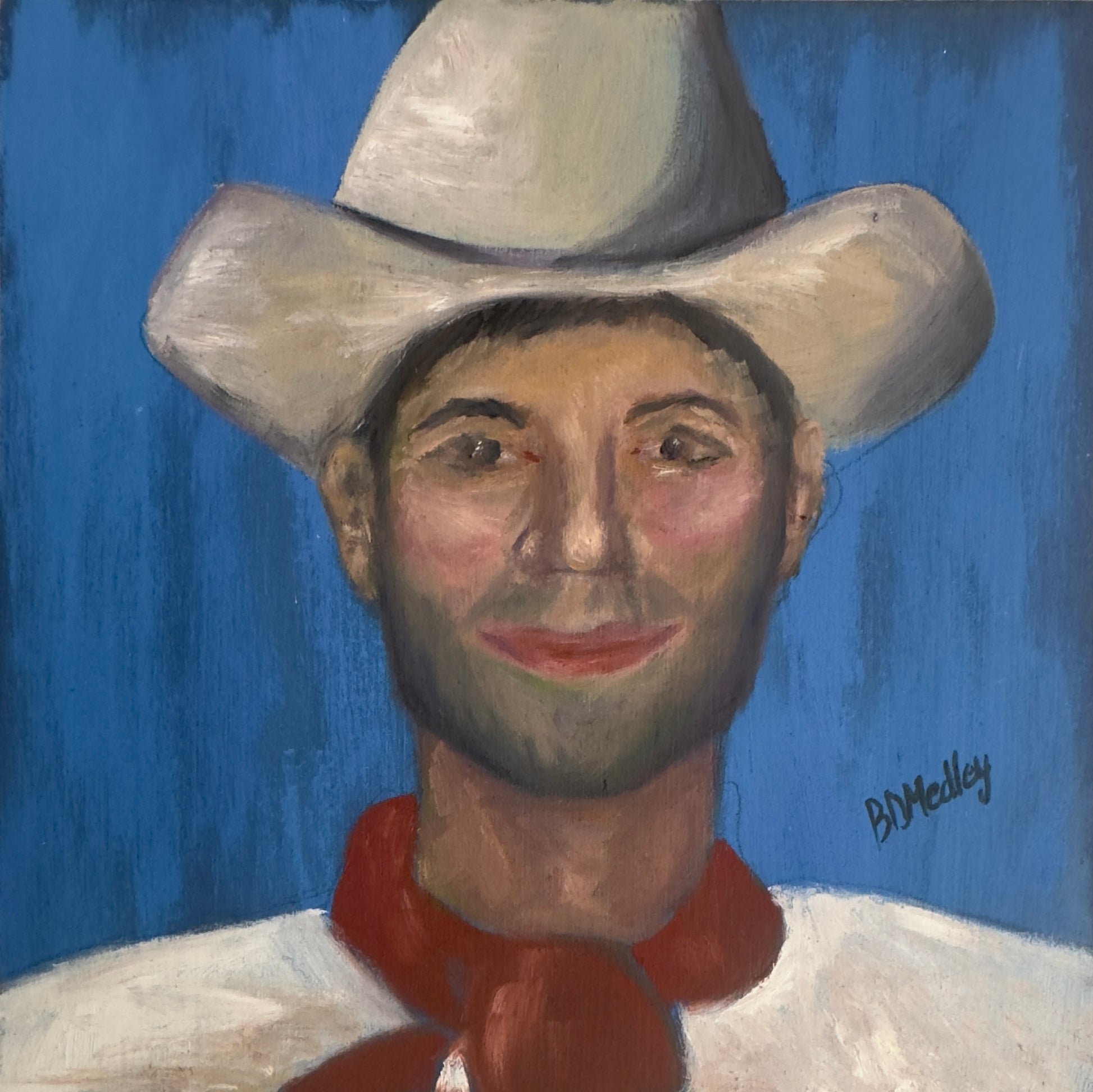 6x6 oil painting in Wood Block; Cowboy; 2024